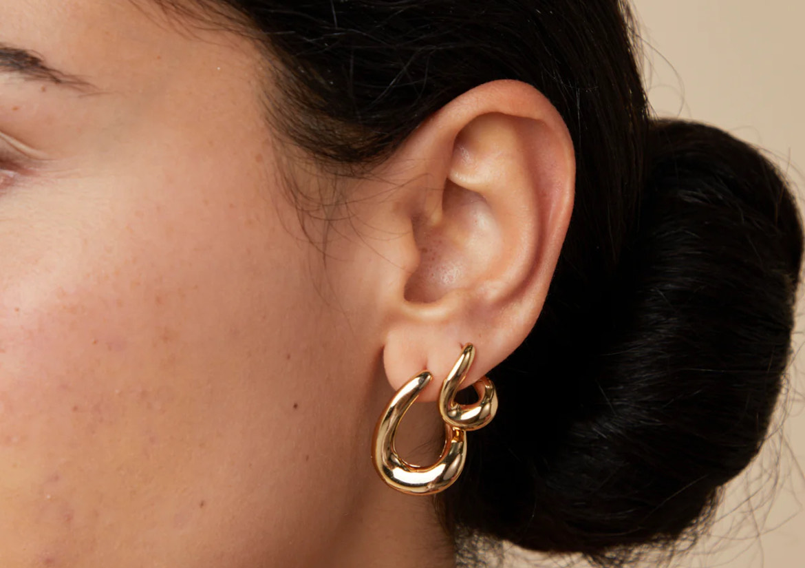 Introducing the Molten Hoops in Gold, embracing all her natural curves. Like you, she’s a stand-out piece in any collection. With a statement twisted design in a shining finish, these hoops are an elevated version of our simple chunky hoops – perfect if you’re looking for something a little more unique. They’re a strong look by themselves, so if you only have one piercing these are perfect for you. But, with ear stacks the more the merrier – so you can add as many huggies & barbells as you want to complete the look.